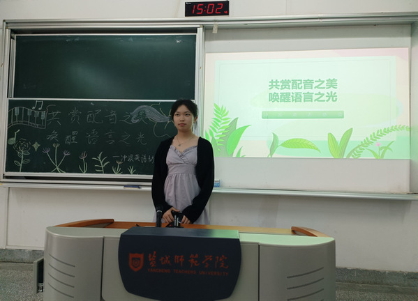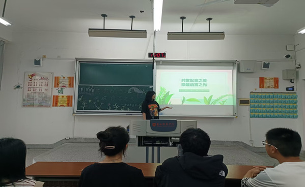 活动中,来自地科213班的史家铭同学不拘泥于单调的朗读,他将流利的口语与丰富的肢体动作融合在一起,将电影中的人物形象表现地惟妙惟肖。不仅体现出他扎实的口语功底,也展现了自身的热情表现力;来自地科212班的姚沛同学表现地同样精彩,配音节奏把握恰当,朗诵时抑扬顿挫,使同学们沉浸在他的配音情节中,赢得了大家的赞赏。此次活动中,同学们反响热烈,分享了许多经典的影视作品,对影视中著名桥段展开细致的赏析,并希望社团可以多举办此类活动,有更多练习和巩固英语口语的机会,锻炼自己的英语运用能力。