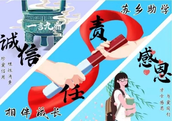 为提高员工的诚信意识、风险意识和感恩意识,引导其树立正确的消费观和价值观,增强当代老员工的使命意识和责任担当,公司积极响应学校号召,开展“苏乡助学,相伴成长”主题海报征集评比大赛。
