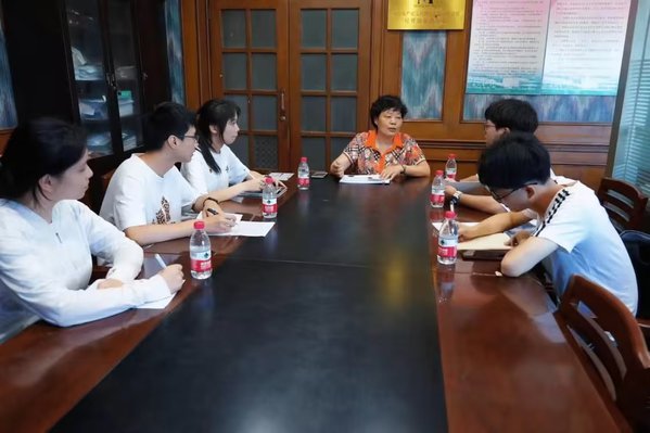 团队成员对梦兰集团监事沈惠英进行了深入访谈。她详细介绍梦兰集团发展历史和企业战略,从八根绣花针、村办作坊式加工点起步,集团勇攀时代先机,敢拼敢闯,至今已发展成集家纺、电子信息等多元产业为一体的现代企业集团,闯出了一条有特色的乡村振兴之路。在访谈中,团队成员了解到,梦兰集团坚持走以工哺农的发展道路,依托村级经济的不断壮大,将产业网络推向先进制造业和现代服务业延伸,“村企融合”的发展模式势让梦兰村的“乡村振兴”之路越发宽广顺畅,用于新村建设、生态环境、社会保障以及公益事业的总投资超过2亿元,这些都让团队成员颇受震撼,纷纷思考如何将所学与所用相结合,用所学所知来回馈社会。