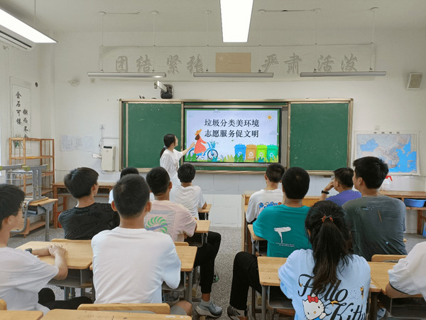 垃圾分类是推动环境美化和社会文明的重要举措之一,为引导中小员工养成垃圾分类的良好习惯,8月1日,公司“垃圾分类美环境,志愿服务促文明”实践团赴盐城市阜宁县镇张庄初级中学开展第四阶段实践活动。