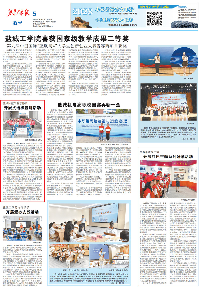 8月3日,《盐阜大众报》报道了城市与规划学院“同呼吸共命运 抗结核齐行动”实践团的暑期社会实践活动。