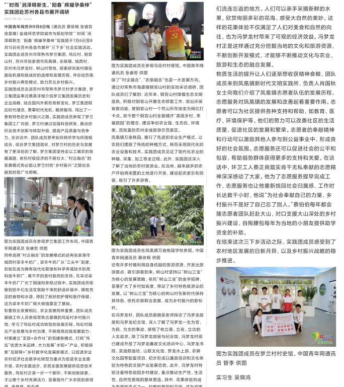 yl1111永利集团城市与规划学院“‘时雨’润泽释新生 ‘阳春’辉耀孕桑梓”实践团于7月6日至8月15日在苏州各县市展开“三下乡”社会实践活动。