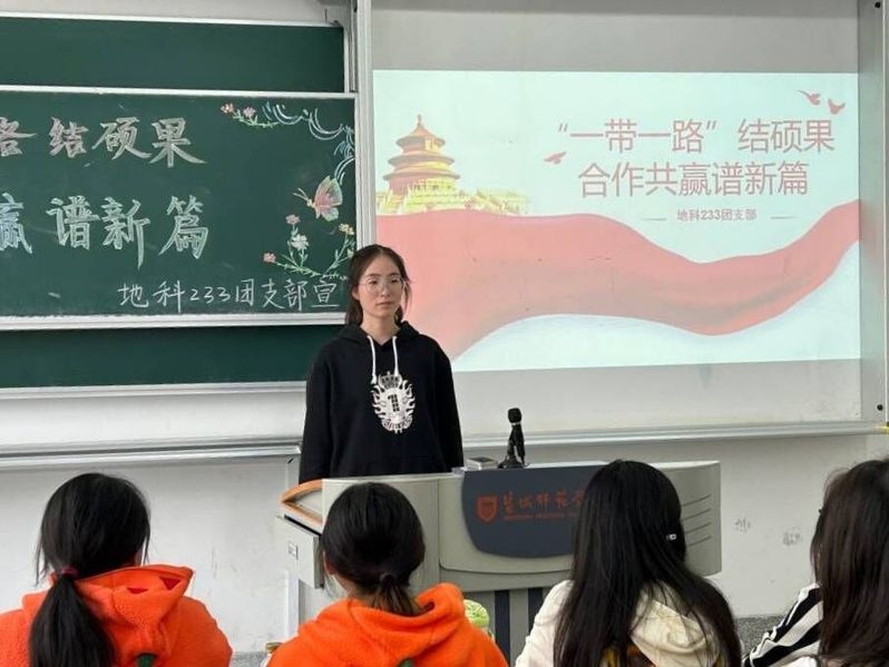 活动中,各班团支部组织同学们观看习近平总书记在第三届“一带一路”国际合作高峰论坛开幕式上的主旨演讲视频,帮助大家更好地了解到只有合作共赢才能办成事,办好事,办大事,进一步增强互学互赢,互利共赢的理念。活动期间,各班团支部从“一带一路”十年成就、国际合作高峰论坛和人类命运共同体三个方面学习了解“一带一路”的高质量建设情况,深刻认识到“一带一路”国际高峰合作论坛对我国和世界发展的意义。同学们结合自身情况,针对青年员工如何在“一带一路”建设新征程上贡献青春力量进行交流,其中地科222班陈尹同学表示:“作为新时代的中国青年,我们应将自己的命运与祖国的发展密切联系在一起,扎扎实实学好专业知识,不断提高自身修养,以奋斗者的姿态与伟大时代‘双向奔赴’,努力成为‘一带一路’的建设者和践行者。”