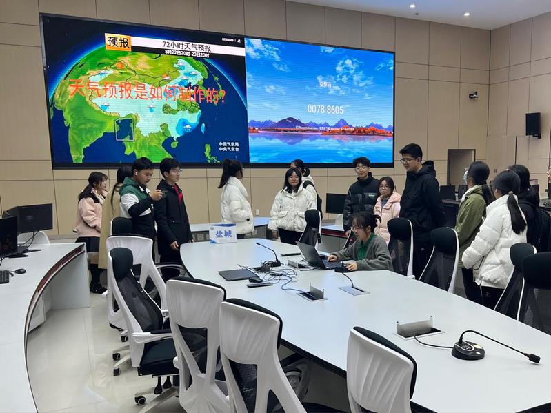 活动过程中,气象科普馆的工作人员向同学们展示了天气预报的过程,在普及气象知识的同时,鼓励同学们参与天气预报的体验工作。此外,同学们还通过观看视频、浏览图文和游戏互动等形式参观了气象科普展厅,对大气的概念有了新的认知,纷纷觉得这是一场别开生面的体验之旅。地科231班王天伊同学表示:“本次气象科普活动让我了解到更多的气象知识,对大气层有了一个清晰的了解。我更加明白了臭氧层对地球重要的意义价值,日后我一定会加入保护大气的行动中。”
