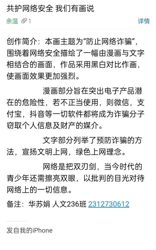 通过本次创作征集活动,同学们增强了网络安全意识,树立了正确的网络安全观,自觉遵守网络文明并将其运用到日常生活,更好地营造健康文明的校园网络环境。(文:费友涵;图:吴心如、王可;审核:孙树叶)