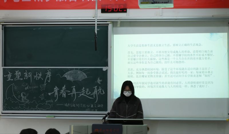 活动过程中,同学们有序就坐,聆听宣讲人员的主题宣讲。学院针对不同年级的同学所面临的不同压力,准备了不同的压力疏导内容。大一新生在进入校园后面对人际交往和学习方式的改变,往往会出现焦虑的心理状况,学院从环境适应、人际交往、学习适应、自我心理适应四个方面向同学们提供了适应性心理咨询。同时,学院也为大二的同学们普及了英语四六级、计算机二级、普通话考试等考试的方法与技巧,帮助大二同学们明确考研目标规划以及对诸多证书考级的应试方向,以积极乐观的心态应战。