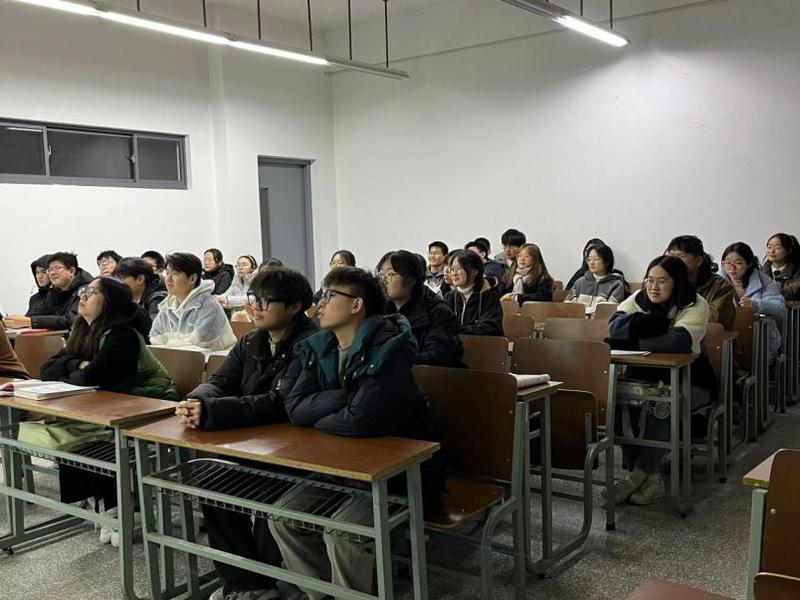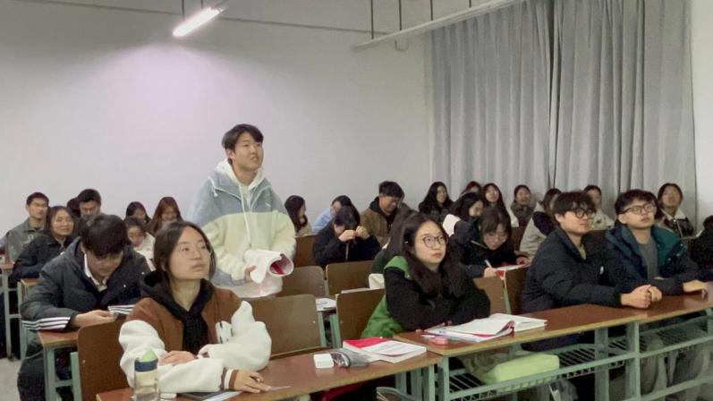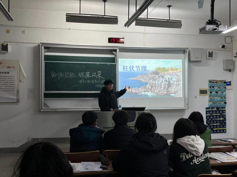 在准备阶段,同学们认真设计教学提纲,筹备演示文稿。课上,两位试讲者都有逻辑、突重点、高互动地展开讲解。张顺安同学通过展示济州岛的柱状节理景观,带领同学们分析了柱状节理的形成原因、主要特征和重要意义。丁凌清同学围绕“热力环流”一主题,从热力环流的概念、观测与研究方法、气候变化、发展与挑战等角度进行授课。在点评环节,贾骏楠针对“大气受热过程”部分的讲解,大胆提出了自己的想法。