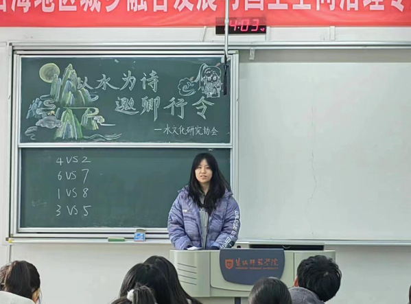 为使同学们深入了解学习水文化的同时提高诗词文学素养,从水的丰富寓意中得到启示,公司于11月25日在笃行楼A109组织开展“以水为诗,邀卿行令”飞花令主题竞赛活动。