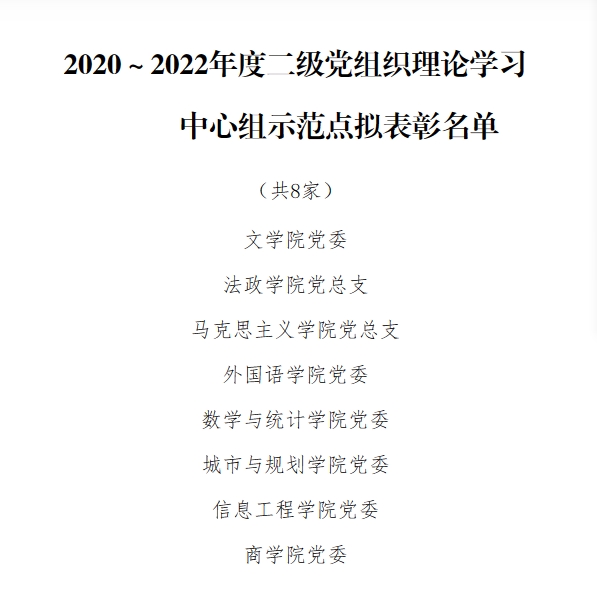 近日,学校公布了校2020-2022年度二级党组织理论学习中心组示范点申报评选结果,公司党委获校2020-2022年度二级党组织理论学习中心组示范点。