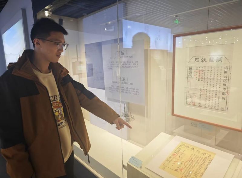 参观过程中,同学们通过馆内以蜡像、雕塑、沙盘等演示手法生动呈现的海盐生产制作过程、各国各代盐票的保存以及精美的盐制品,直观地了解到海盐文化、我国盐业发展史以及背后蕴含的璀璨文化。同学们按博物馆各个展馆的次序依次参观,近距离体会古代“炼卤煎盐”“晒海为盐”等海盐生产和盐民生活的多层文化场景,感受盐城的千年风华故事和生生不息的历史文脉,加深了对地方历史的情感认同。地科233班的陈逸衡同学表示:“通过这些丰富的文物展品,不由地让我身临其境,更深入地了解到海盐文化,日后我定会秉承着‘探索、传承、创新’的宗旨,学习更多优秀的传统文化。”