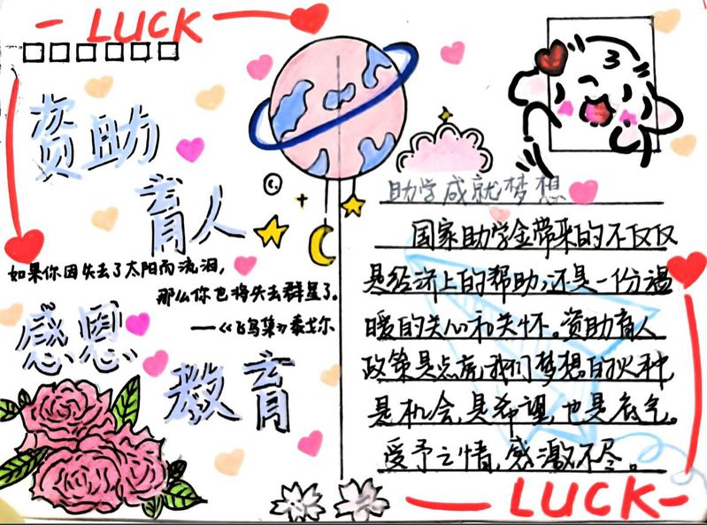 为进一步提高员工的感恩意识,培养员工的社会责任感,引导员工树立正确的价值观,形成良好的道德品质。公司开展“资助育人,传递温情”资助政策活动。此活动以收集明信片或书签的方式开展。