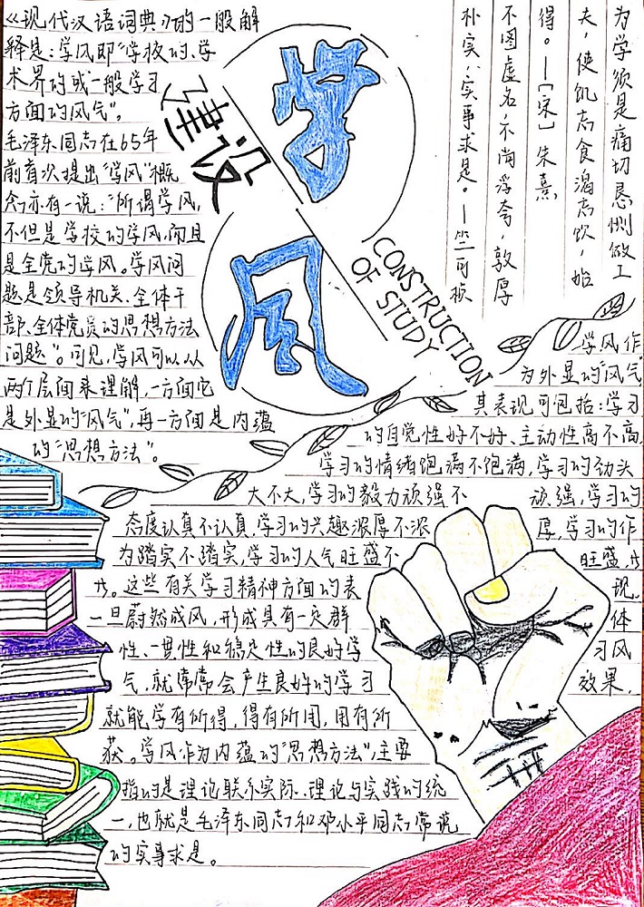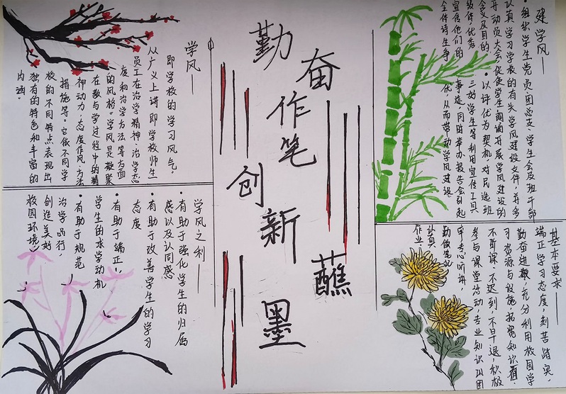 本次活动紧扣学风建设主题,以摄影、书画、手抄报等多种形式。本次活动呼吁同学们加强学风建设,增强主体意识,端正学习态度,宣扬学风建设精神。本次活动作品不仅内容丰富、形式多样,还展现出同学们的专业水平与多元思考。地科233班的李姝娴同学表示:“学风建设活动对老员工很有教育意义,可以提高我们的学习主动性。”测绘235班的王可这样写道:“校风建设既是校园精神文明建设的一个重要组成部分,也是教育改革与发展的永恒主题。”