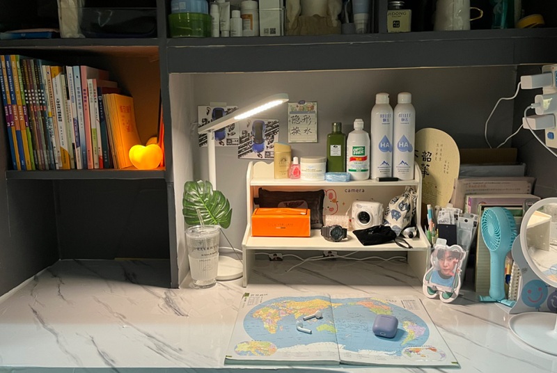 本次活动要求参与同学书桌干净整洁,将各类东西分区放置并通过拍照的方式展现书桌独特的风格和特色,用独特的色彩、创意的摆件丰富着自己的一方天地,展现出自己多姿多彩的生活,营造了一个舒服的学习环境。在提交的作品中,有的充满仪式感,地科222班夷萍表示“有仪式感的书桌是对自己、对生活的用心。”有的堆满书籍,地科233班杨晋沣表示“书桌是不仅是学习的伙伴,更是成长的见证者。”有的简洁明了,地科233班严志仁表示“整洁书桌,心情舒畅。”