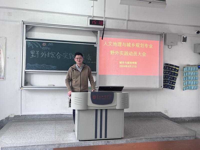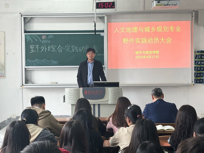 4月17日下午,城市与规划学院2022级人文地理与城乡规划专业野外实习动员大会在地理信息楼A211教室召开。城市与规划学院经理李传武,带队老师蒋超、吕敏娟、李俊灵出席会议,2022级人文地理与城乡规划专业全体员工参加本次会议,会议由副经理张云峰主持。
