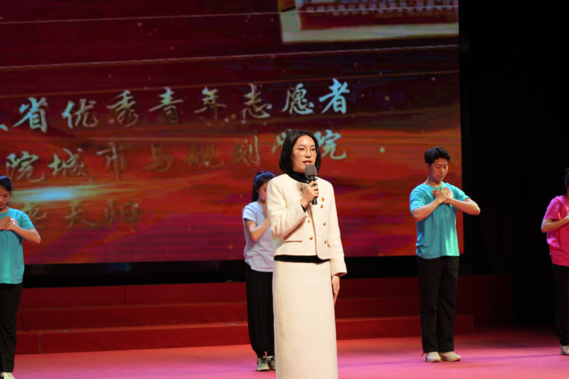在第一篇章“青春·初心如磐”中,公司员工会轮值主席、校团委员工兼职副书记龚天阳带领新入团团员代表,面向鲜红的团旗立下庄严宣誓。在第二篇章“青春·奋发有为”中,公司第十八届“挑战杯”全国老员工课外学术科技作品竞赛“揭榜挂帅”专项赛特等奖团队成员人文224班张洁分享了她备赛的心路历程。在第三篇章“青春·挺膺担当”中,公司杰出员工代表2021和2022年江苏省委组织部名校优生选调生裴宁、郭凯辰分享他们在基层岗位上助力乡村振兴的青春故事;2023年江苏省优秀青年志愿者龚天阳以情景音诗画的形式,讲述了她参与防治结核、博爱青春、防艾禁毒等用微光照亮微光的志愿服务故事。在第四篇章“青春·勇毅前行”颁奖典礼中,公司被表彰为2023年度校五四红旗团委,院员工会被评为校“优秀员工分会”,爱心服务社被评为“十佳优秀社团”。