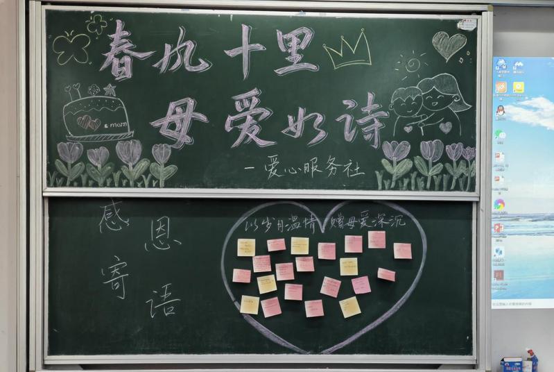 活动中,大家积极分享母爱事迹,并对如何回报母爱提出了自己的想法。地科227班的卞保艾分享了和妈妈一同走过的大好河山以及抓拍的妈妈照片,她表示:“妈妈不仅仅是引路人,更是好朋友,母爱是那么深沉那么纯粹。”地科231班的仲敏回忆了高考后妈妈无声的小惊喜,妈妈默默的亲自将卧室翻新作为高考结束的礼物,她表示:“母爱虽无声却很盛大。”活动最后,大家纷纷在便签纸上写下对妈妈的感恩寄语,贴上展板,让爱洒满在我们身边,给我们带来无尽的温暖与力量。