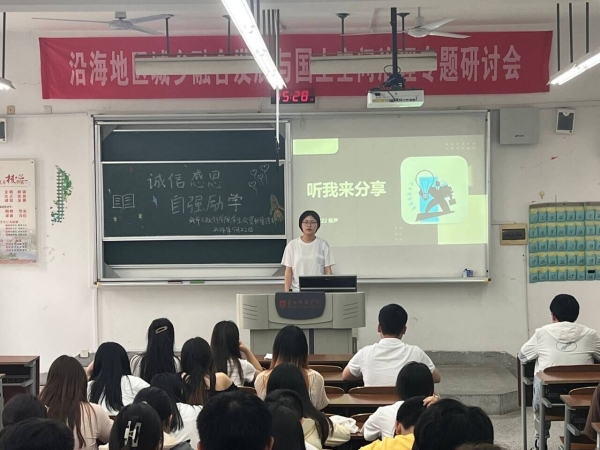 讲座伊始,地科222班陈尹分享了她在专业学习、学科竞赛、考级考证道路上成功的学习方法和应对技巧,并结合自身奖学金申请的经历,向在座同学传授成功的经验与感想,引起了在场同学的广泛共鸣。