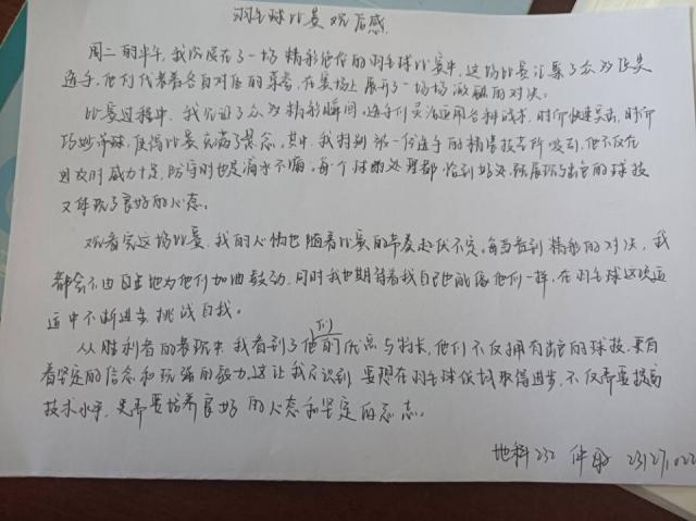 5月23日线下统一训练期间,热身运动结束后,同学们都叫上自己的“球搭子”,在操场上尽情挥拍。球场上气氛欢快而热烈,同学们的对打精彩纷呈。猝不及防的发球,险中求胜的反手放网前球,都被相机一一记录。其中,地科233班胡锦熙和地科231班简梦雨两位同学的表现尤其精彩。同学们在对打中充分展示了积极向上的精神面貌,尽情挥洒汗水、释放压力,享受着运动的快乐。