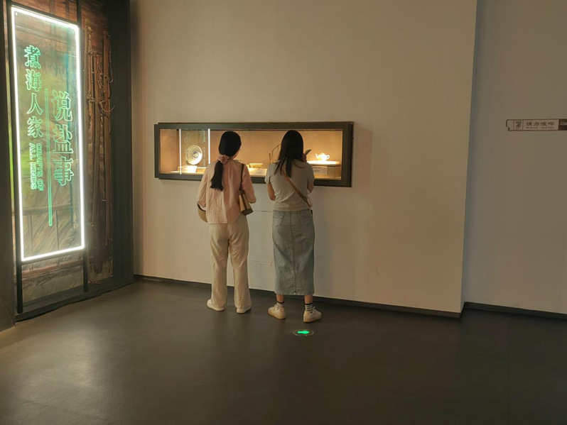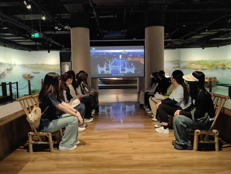 活动过程中,同学们参观了盐城市博物馆的各个展厅,深刻认识了盐城从古至今的发展历史。在淮海人家处,同学们围坐在一起观看着淮海煮盐的纪录片,丰富了同学们对淮海煮盐文化的认识,看着旁边煮盐的工具,墙上绘制的图示,对于同学们来说更是一次特殊的体验。其中地科233杨花同学表示:“参观“水之秀”不仅是一次视觉和感官的享受,更是一次深刻的文化和历史体验。通过这些展示,我们不仅能够欣赏到盐城人民的艺术才华和智慧,也能够更加珍惜和传承这些宝贵的文化遗产。”