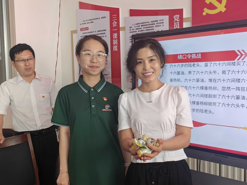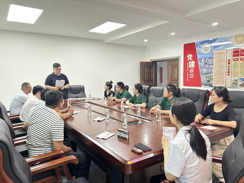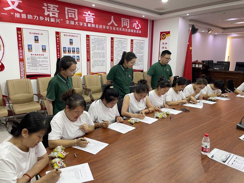 实践团成员与夏州街道工作人员开展专项座谈交流,从地方角度了解乡村振兴战略实施情况和国家通用语言文字普及情况,街道办网格化管理服务中心主任刘长青介绍道,由于苏陕两地相隔较远、口音不通,两地的干部同志们在解读国家政策法规、交流现代农业技术等工作中存在“听不懂、说不清、难沟通”的问题,乡村振兴战略实施存在现实堵点。随后,实践团成员向工作人员进行“推普助力乡村振兴”专题讲座,宣传推广普通话的重要性,讲解普通话在沟通交流、业务合作等方面的优势,鼓励在苏陕两地协作干部们在日后的工作中积极宣传普通话,提高沟通效率。