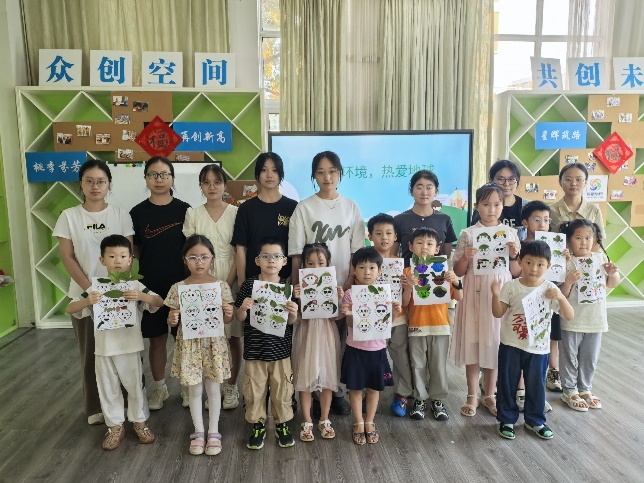 活动尾声,小朋友们纷纷上台展示自己的作品,并分享设计理念,现场气氛热烈而温馨。实践团成员与小朋友们合影留念,记录下这难忘的时刻。此次活动不仅是一次环保知识的普及,更是一次心灵的触动,激发了孩子们对自然的爱护之情和对美好生活的向往。实践团成员于点在总结中表示:“每一份对自然的温柔以待,都是对未来美好家园的深情告白。我们希望通过这样的活动,能够引导更多人关注环境保护,从点滴做起,共同守护我们的地球家园。让我们携手并进,继续成为大自然的守护者,共同绘制一幅人与自然和谐共生的美好画卷。”