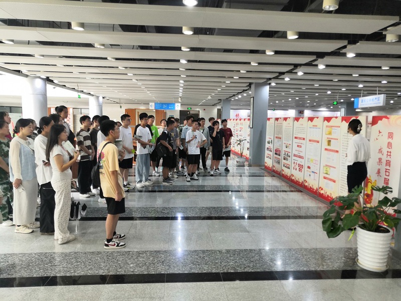 在讲解员的指引下,同学们参观了“同心共育石榴红”成果展,十五面展板清晰有力地展示了公司多年来培育民族团结进步火红石榴籽的辉煌成就,在场的同学对此赞叹不已。在红石榴工作坊,大屏幕上投影了公司新疆支教员工的出征掠影和红石榴舞蹈展演。同学们还参观了红石榴阅读角、新四军研究院,体悟了中华民族共同体意识的校园文化氛围,让民族团结进步之花在他们心田绽放,让他们对未来的盐师生活更加充满期待。