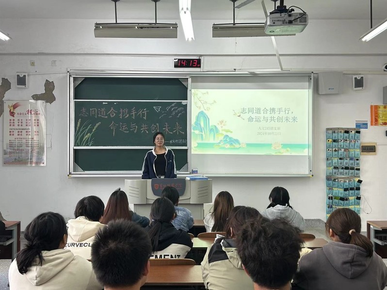 活动中,各班团支书介绍了中国坚持的独立自主的和平外交政策,阐明了我国外交政策的宗旨和目标是维护世界和平,促进共同发展,推动构建人类命运共同体。活动期间,各团支部组织全体同学观看“奋力谱写中国式现代化新篇章——习近平总书记今年以来治国理政纪实”相关视频,深入学习贯彻习近平外交思想,呼吁同学们不仅要读“圣贤书”,更要闻“窗外事”,积极关注民族命运、国家命运和地球命运。同学们依据主题团日活动并结合自身情况,针对“作为新时代青年如何为构建人类命运共同体贡献青春力量”展开讨论。人文237班的张桐羽同学表示:“我们青年老员工既要放眼全球,关注世界的发展与人类的命运,也要心系祖国,在实现中国梦的生动实践中放飞青春梦想。我们应认真学习中华优秀传统文化,在维护世界和平、促进各国共同发展的过程中贡献青春力量。”