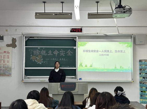 活动中,各班团支书介绍了基本的安全自护知识,强调了生命安全的重要性,呼吁同学们增强自我保护意识,提高自护自救能力,从而保障自身生命安全和财产安全。活动期间,各团支部组织全体同学观看“人民至上”学习强国视频,同学们深刻地认识到中国共产党代表最广大人民的根本利益,坚持以人民为中心的发展思想,全心全意为人民服务,把人民对美好生活的向往作为奋斗目标。同学们依据主题团日活动内容并结合自身情况,针对“如何落实人民至上、生命至上的宗旨”展开讨论。人文236班的董枳贝同学表示:“我们青年老员工应该增强安全意识,做好各种安全防范措施,确保自己和他人的生命安全。我们应积极参与社会公益项目,关注弱势群体,树立正确的价值观,传播“人民至上、生命至上”理念,让更多人重视生命安全和人民权益。”