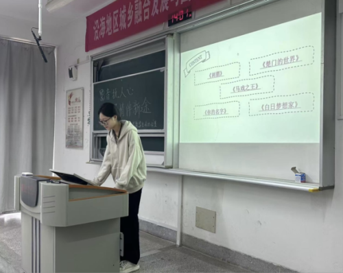 在本次活动中,地科231班龙菲菲同学制作了精美的ppt,向新生们分享了近期上映的一部现实题材影片——《刺猬》,影片讲述了一段关于成长、挣扎和自我救赎的故事,展现了主人公“非常规”的人生,以此激励新生们努力追求理想与自由,实现自我意识的觉醒,也祝愿新同学们“不被万事万物卡住”。