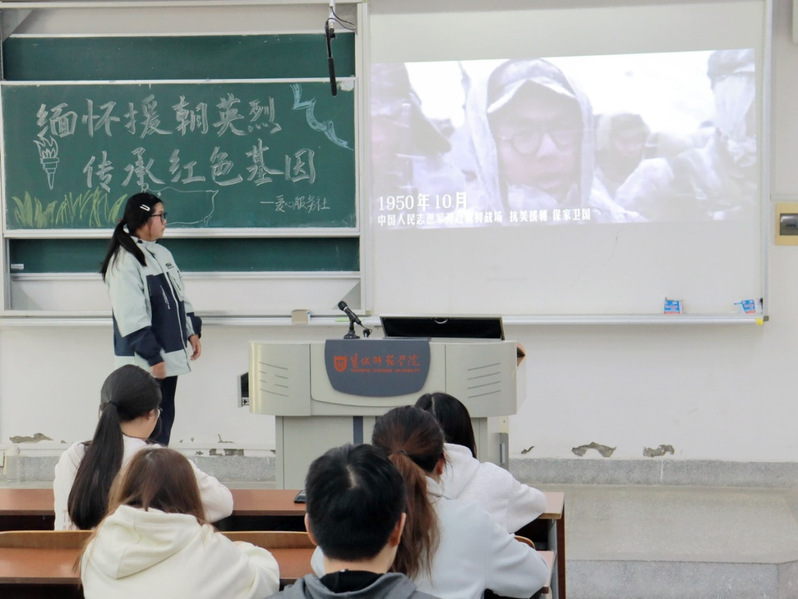 在金秋十月,为了进一步树立正确的价值观,传承红色基因,增强同学们对烈士红色精神的了解和感悟,10月23日下午,公司爱心服务社于城资楼A108教室开展“缅怀援朝英烈,传承红色基因”活动。在这个特别的日子里,我们重温那段波澜壮阔的历史,传承红色基因。
