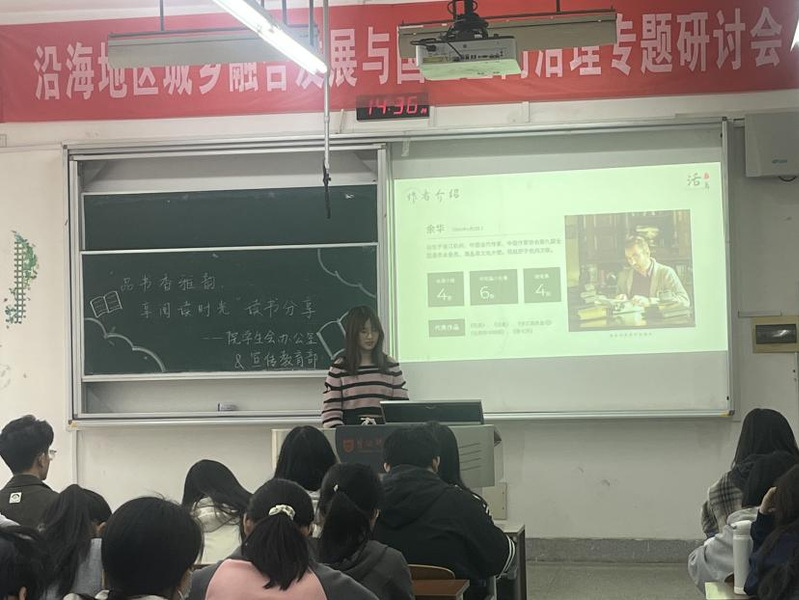 活动现场,100余名学子齐聚一堂。舞台上,作为分享者的十名同学依次分享触动心灵的书籍:有人从《平凡的世界》中汲取奋斗的力量,感叹“苦难是人生的垫脚石”;有人借《百年孤独》探讨孤独与生命的本质;还有人通过《活着》领悟坚韧的意义。他们或深情朗读片段,或畅谈感悟与憧憬,言语间充满对知识的渴望和对生活的思考。其中,来自地科241班的周忆芯同学在分享《活着》时,侧重剖析主人公福贵名字的含义,引起了同学们的深入思考。福贵的名字暗含反讽,他既未”福”也未”贵”,却在一次次失去中诠释了”活着”的原始力量。正如余华所言:“人是为活着本身而活,而不是为活着之外的任何事物。”