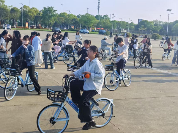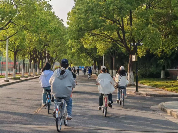 活动中,同学们骑着自行车在西操场整装待发,在强调骑行安全注意事项后,队伍沿指定路线有序出发。骑行过程中,大家整齐的车队成为校园里一道流动的绿色风景线。沿途,同学们不仅欣赏到校园里的春日美景,感受到微风拂面的惬意,更在骑行过程中深刻体会到绿色出行的乐趣。活动后,同学们表示深刻意识到环保的重要性,以后会更多地选择绿色出行方式。