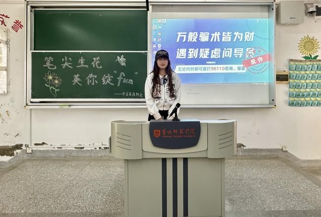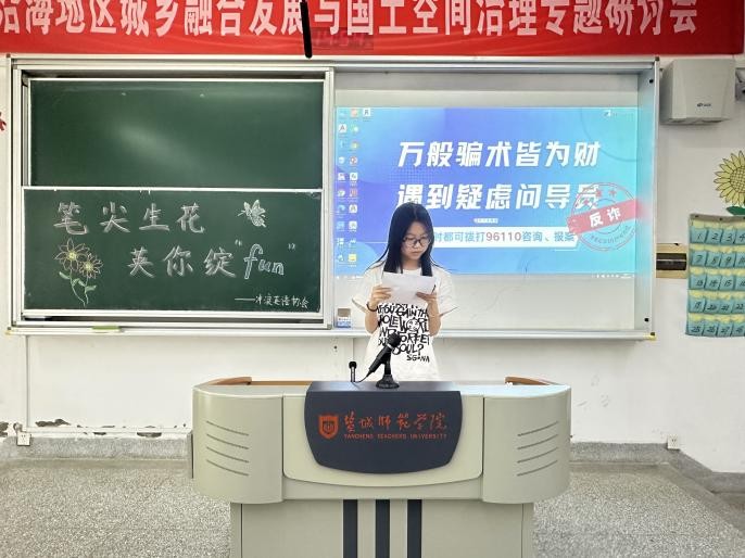 活动中,选手们凝神静气,伏案挥毫。人文237班徐溢琳同学撷取《简·爱》中的经典段落“The more the more I alone, no friends, no support, I will respect myself”为蓝本,笔触流畅优雅,字母间距匀称,展现出扎实的英文书写功底;海洋243班李海霞同学摘录马丁·路德·金的《我有一个梦想》精彩段落,笔锋遒劲有力,字里行间传递着对自由与平等的深刻思考。书写环节结束后,选手们依次登台,借助投影仪展示丹青作品,并结合所选内容分享感悟。地科244班的刘益硕同学从《纽约时报》的环保报道切入,剖析生态破坏背后的社会问题,呼吁大家关注绿色低碳发展,其独到见解赢得现场阵阵掌声。