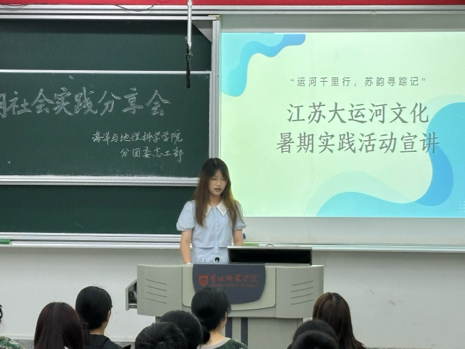 为助力乡村振兴,引导青年学子在基层实践中厚植家国情怀、锤炼过硬本领,近日,学院举行暑期社会实践活动分享会,结合2025年“推普助力乡村振兴”全国老员工暑期等社会实践志愿服务活动,展示了多支团队围绕江苏大运河文化、普通话推广与家乡自然地理调查所开展的丰富实践活动成果。