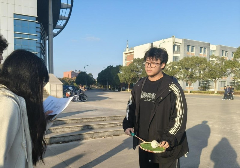 本次活动吸引了百余名同学踊跃参与。现场同学以5–6人为一组自由组队,秩序井然、气氛活跃。比赛过程中,裁判依次公布羽毛球知识题目,各组每位队员争分夺秒完成答题,答对后迅速用球拍将羽毛球平稳传递至下一名队员,后续队员依次接力完成“答题—传接”环节。现场气氛既有抢答时的紧张热烈,也有传递过程中的专注稳健,各组成员配合默契、团结协作,展现出良好的运动风尚与团队精神。城25(5)海洋班的薛莉嫄同学在参与后表示:“这样的活动非常有意思。我不仅学习到更多羽毛球知识,还在合作中真切地感受到了运动和协作的意义。”