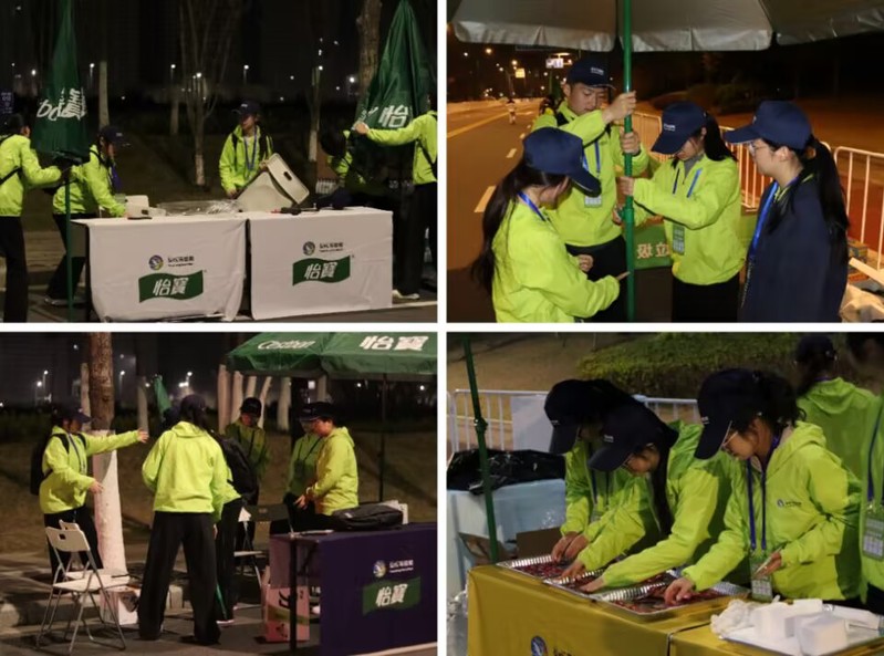 随着赛事推进,气温逐渐攀升,春日的阳光愈发炽烈。在赛道补给站点,公司志愿者始终坚守岗位,为参赛跑者提供细致周到的服务。他们及时响应跑者需求,递上饮用水与能量补给,一声声“加油”传递着温暖与鼓励。尽管长时间站立、重复递送物资让同学们身心俱疲,汗水浸透衣衫、手臂酸痛不已,但大家依旧保持微笑、热情不减,相互补位、默契配合,以饱满的精神状态坚守岗位,为跑者注入源源不断的动力,成为赛道上最坚实可靠的后盾。