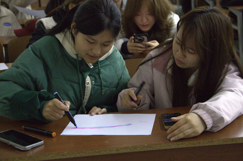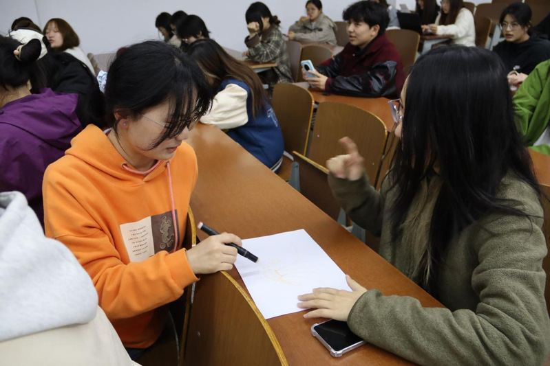 活动开始,主持人向同学们介绍了活动初衷与规则。首先,活动工作人员为各小组分发画纸、画笔及涵盖天文现象、地理地貌、自然景观等类别的题目题库;其次,各小组进入比赛环节,成员分工协作,部分同学以线条勾勒景观,其余同学根据画作线索猜测答案,现场氛围热烈有序;接着,工作人员根据答题情况为参与同学登记美育分与PU学分;最后,工作人员收集了同学们的活动反馈意见。